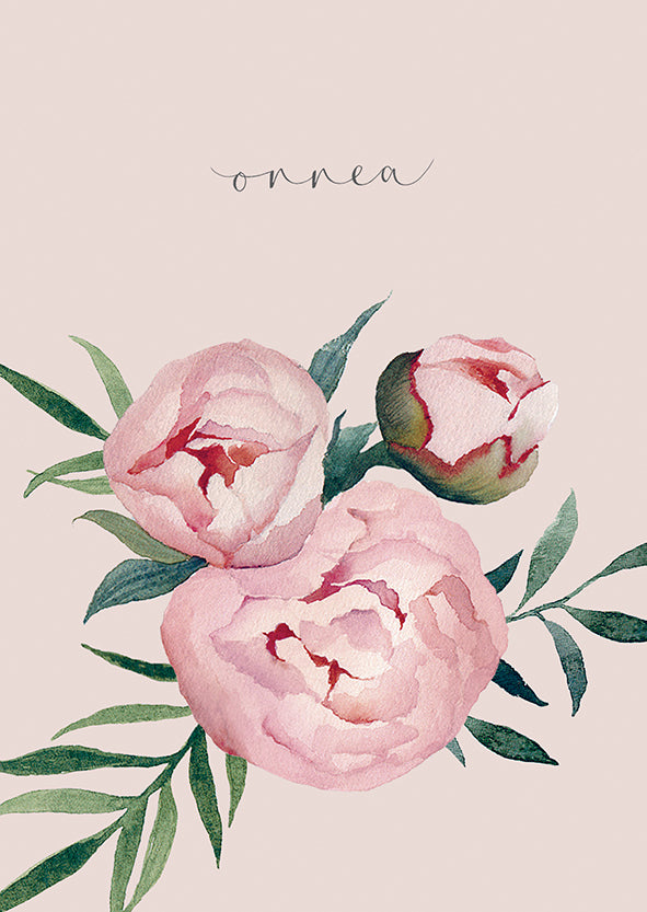 Kaksiosainen, laadukas onnittelukortti kauniilla kukkakuviolla ja onnittelu-tekstillä. Kortti on Henna Adelin suunnittelema ja valmistettu Suomessa. Sisäpuoli on tekstitön, jotta voit kirjoittaa omat terveiset.