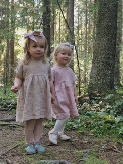 Unan lyhythihainen harso-mekko sopii mallin puolesta eri kokoisille käyttäjille. Voit halutessasi valita reilumman koon, aluksi mekko on lapselle pidempi ja myöhemmin muuttuu tunika-mittaiseksi. Unan lasten harsovaatteiden koot vastaavat tuplakoon isompaa kokoa.