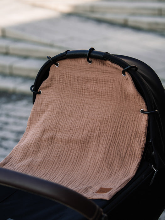 Unan harsokankainen vaunuverho on kevyt, ilmava ja kauniisti laskeutuva suoja vauvan vaunuihin. Vaunuverho suojaa pienokaista pölyltä, tuulelta, sateelta ja auringonvalolta – ja tuo vaunuihin rauhallisen, varjoisan nukkumapaikan.