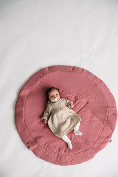Leikkimatto on kevyt ja helppo ottaa mukaan, ja sen pehmeä materiaali tuntuu miellyttävältä vauvan ihoa vasten. Kaksinkertainen rakenne tekee matosta sopivan sekä lattialla leikkimiseen että vauvan käärimiseen. Sopii ihanasti New born -kuvauksiin. Halkaisija 97cm.