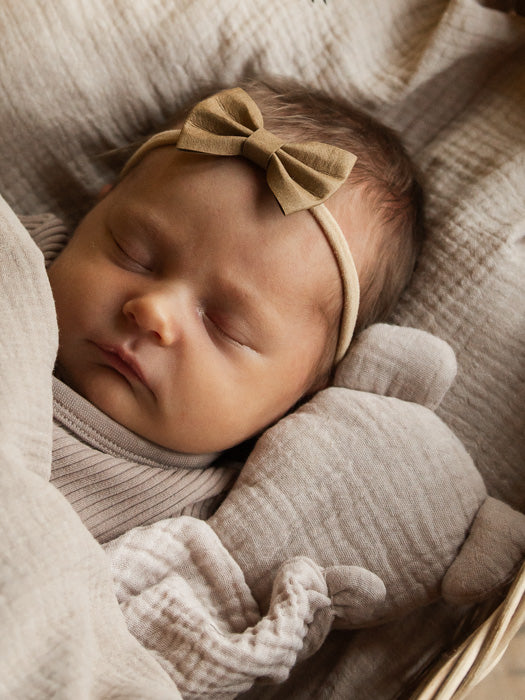 Unan paperinahkainen rusettipanta on kaunis ja ajaton asuste niin arkeen kuin juhlaan. Rusetti on valmistettu ekologisesta paperinahasta – kestävästä ja kevyestä materiaalista, joka säilyttää muotonsa ja ilmeensä. Panta on pehmeää ja joustavaa nylonia, joten se sopii sekä lapselle että aikuiselle.