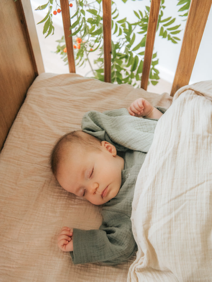 Pehmeä ja helppo pinnasängyn aluslakana pienelle nukkujalle, sävy old rose. Ilmava harsokangas tuntuu miellyttävältä herkkää ihoa vasten ja tekee sängystä ihanan pesän lapsen unille.