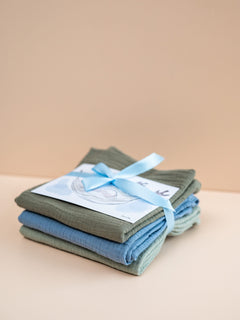 Valitsemme lahjaan yhteensopivat sävyt Unan ihanista harsoista ja sidomme pakkauksen kauniisti narulla. Käytössä on harmonisia sävy-yhdistelmiä, joista löydät helposti perheelle sopivan vaihtoehdon. Mikäli jokin sävy on tilapäisesti loppu, valitsemme lahjaan kauniisti sopivan värin. Halutessasi kirjoitamme tervehdyksen korttiin puolestasi.