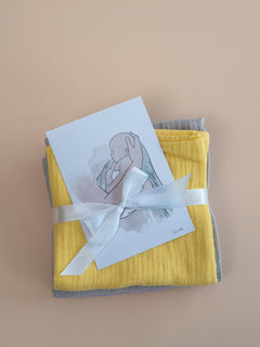 Valitsemme lahjaan yhteensopivat sävyt Unan ihanista harsoista ja sidomme pakkauksen kauniisti narulla. Käytössä on harmonisia sävy-yhdistelmiä, joista löydät helposti perheelle sopivan vaihtoehdon. Mikäli jokin sävy on tilapäisesti loppu, valitsemme lahjaan kauniisti sopivan värin. Halutessasi kirjoitamme tervehdyksen korttiin puolestasi.