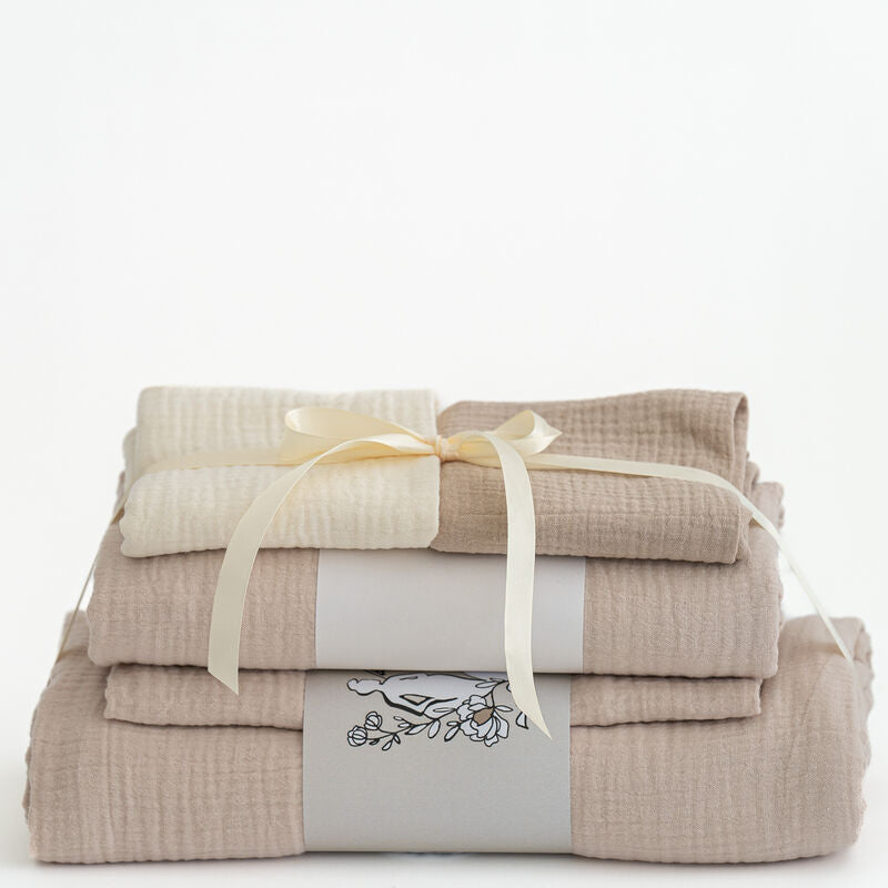Lahjassa mukana on pehmeät pussilakanat, monikäyttöinen Syli-harsoviltti, kaksi mini-harsoa sekä onnittelukortti. Kauniisti narulla sidottu paketti on valmis annettavaksi. Halutessasi kirjoitamme tervehdyksen korttiin puolestasi.