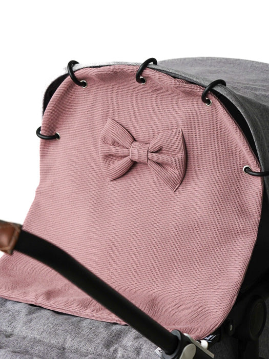 Vaunuverhoa koristaa kaunis rusetti, joka on valmistettu samasta pehmeästä vohvelikankaasta. Mukana tulevat monitoimirenkaat tekevät kiinnittämisestä helppoa, ja malli sopii useimpiin vaunuihin. Koko noin 43 × 49 cm.