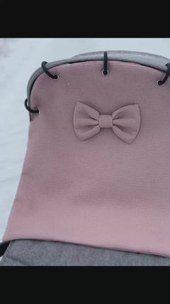Vaunuverhoa koristaa kaunis rusetti, joka on valmistettu samasta pehmeästä vohvelikankaasta. Mukana tulevat monitoimirenkaat tekevät kiinnittämisestä helppoa, ja malli sopii useimpiin vaunuihin. Koko noin 43 × 49 cm.